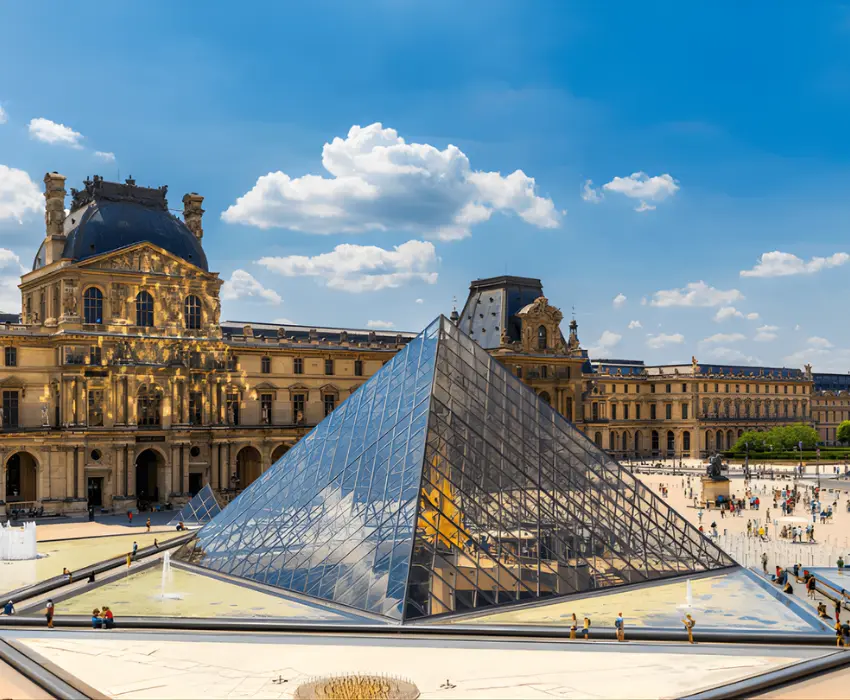 - Bảo tàng Musee de Louvre: là viện bảo tàng lớn nhất thế giới (tổng diện tích 210.000 m2), từng là cung điện của các vị vua Pháp (thăm quan chụp ảnh bên ngoài).