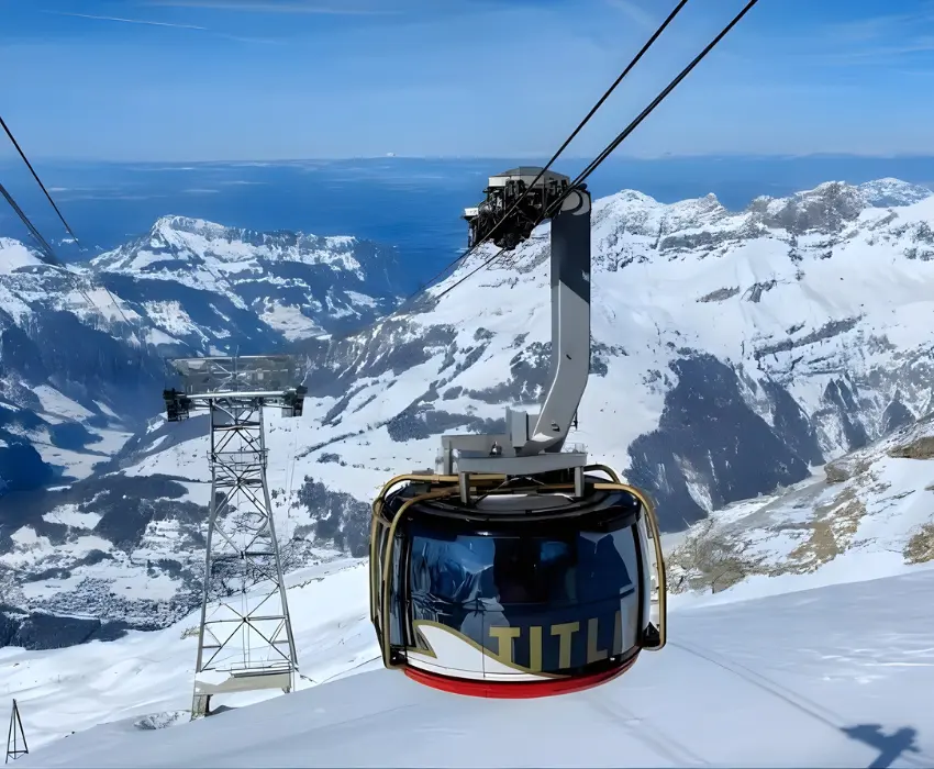 - Quý khách sẽ có cơ hội đáp cáp treo lên núi Titlis quanh năm tuyết trắng (chưa bao gồm vé cáp treo lên núi).