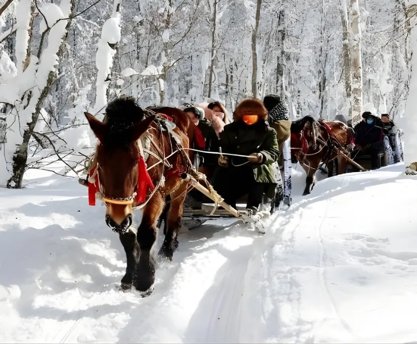 - Trải nghiệm xe ngựa kéo truyền thống trên tuyết – hành trình dịu dàng xuyên qua những khung cảnh như bước ra từ tranh vẽ - hoạt động đặc trưng của vùng tuyết trắng phương Bắc, mang lại cảm giác như bước vào một câu chuyện cổ tích.