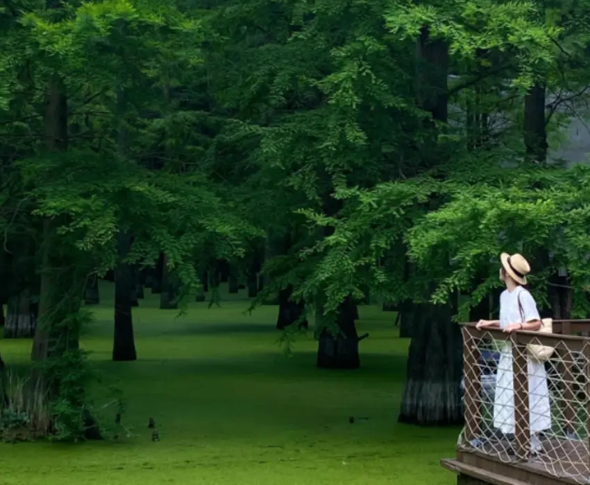 - Hồ Thanh Sơn - tham quan rừng ngập nước Hồ Thanh Sơn – được ví như “rừng Amazon thu nhỏ” của Trung Quốc. Quý khách sẽ được ngồi thuyền len lỏi giữa những hàng cây mọc giữa làn nước xanh, không khí trong lành, mang lại cảm giác thư giãn tuyệt vời giữa thiên nhiên.