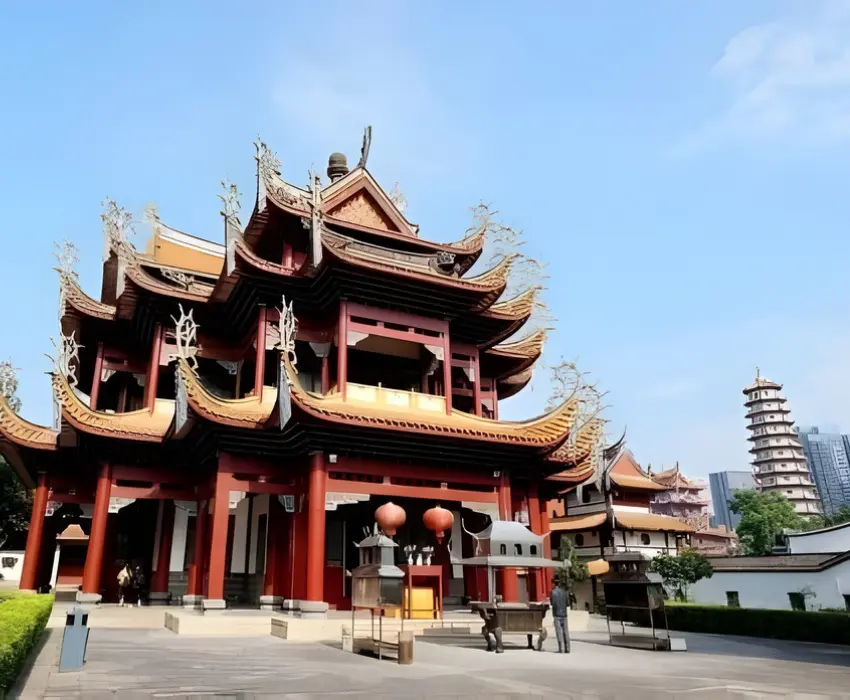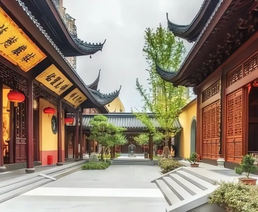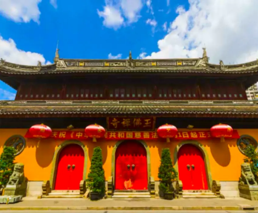 - Chùa Phật Ngọc được xây dựng theo phong cách cung điện đời Tống, nghiêm trang và tráng lệ với hai pho tượng Phật bằng Bạch ngọc cao 2m (tượng Phật Thích Ca thuyết pháp và tượng Phật Thích Ca nhập Niết Bàn), báu vật của Trung Hoa.