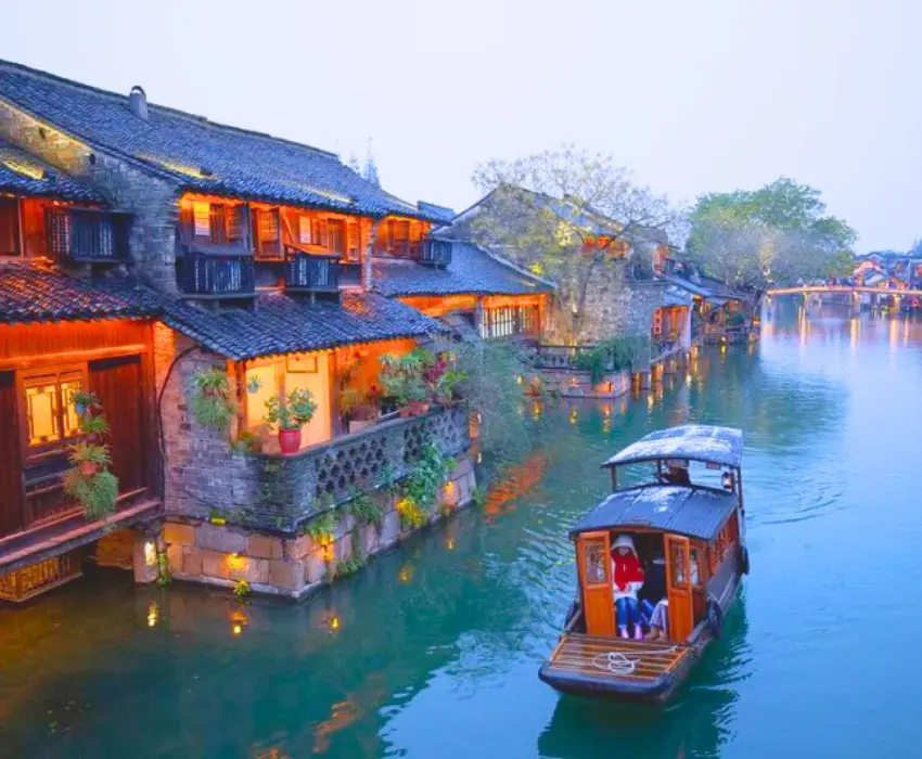 Trưa: Ăn trưa tại nhà hàng. Sau đó đoàn khởi hành đi Nam Tầm – Cổ trấn nghìn năm tuổi ở Chiết Giang, quý khách than quan: