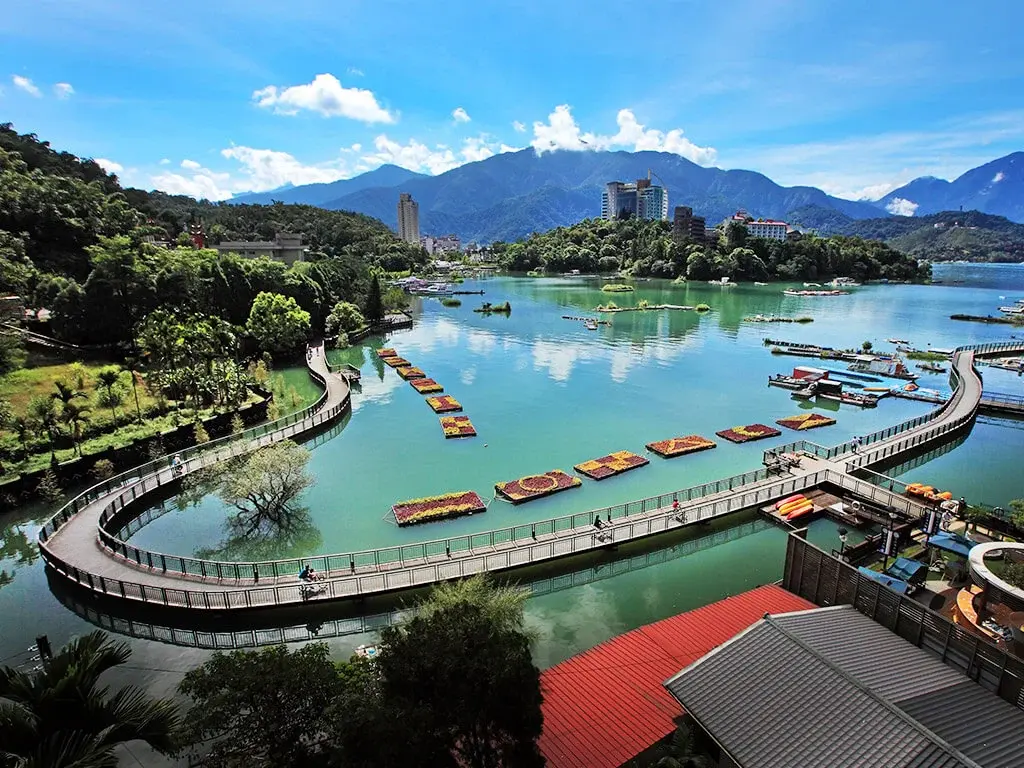 Đàm Nhật Nguyệt: Nơi đây được ví như là chốn bồng lai tiên cảnh nơi hạ giới bởi nó khoác lên mình vẻ đẹp lãng mạn mà không nơi nào có. Sở dĩ Hồ Nhật Nguyệt có cái tên mỹ miều như vậy vì đứng từ tháp Ci’en (Từ Ân) nhìn xuống phía Đông, bạn có thể nhìn thấy hồ có hình dáng tròn như ông mặt trời - đó là phần Nhật. Còn ở phía Tây lại có đường cong như vầng trăng khuyết - đó là phần Nguyệt. Chính vì thế không ít lần Nhật Nguyệt Đàm đã đi vào thơ ca của nhiều thi sĩ nổi tiếng và được lên hình trong rất nhiều bộ phim nổi tiếng.