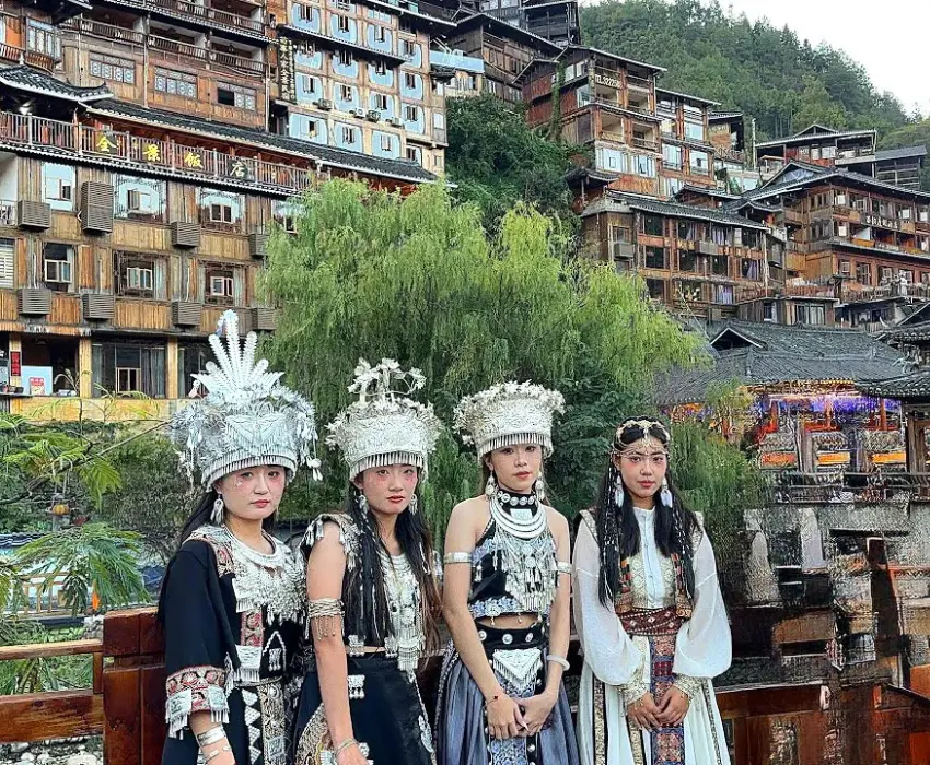 Tối: Đoàn ăn tối tại nhà hàng. Sau bữa tối, Quý khách có thể đăng kí thưởng thức show diễn nghệ thuật nổi tiếng Tống thành Thiên Cổ tình, hoặc show Rạng rỡ Tương Tây để tìm hiểu thêm về nét văn hóa của dân tộc Miêu nơi đây (Chi phí tự túc khoảng 380 tệ).
