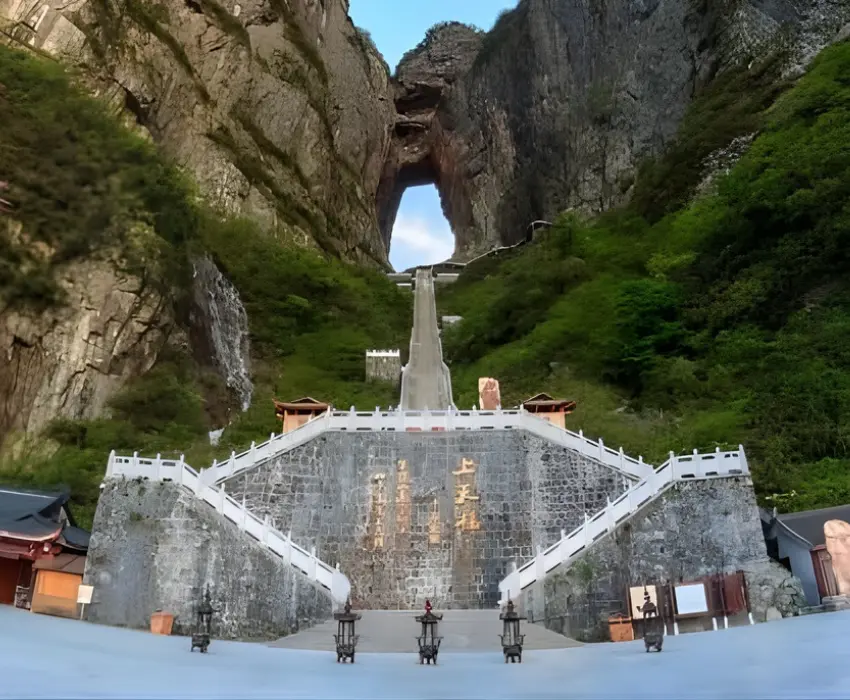 - Lối đi Sạn đạo Kinh (kính trên vách núi) – nơi thử thách lòng can đảm với tầm nhìn thẳng xuống vực sâu hun hút. Đền Thiên Môn – tọa lạc trên đỉnh núi, là nơi linh thiêng, thanh tịnh giữa không gian mênh mông trời đất (chi phí tự túc).