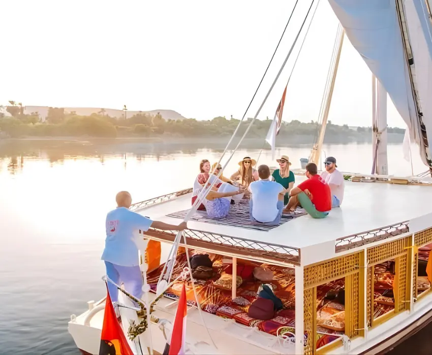 - Ngồi felucca – chiếc thuyền buồm truyền thống Ai Cập, không động cơ, lặng lẽ trôi giữa sông Nile trong ánh hoàng hôn dần buông. Trong không gian yên ả, quý khách sẽ cảm nhận một Ai Cập thật khác – nhẹ nhàng, sâu lắng và đầy thi vị.