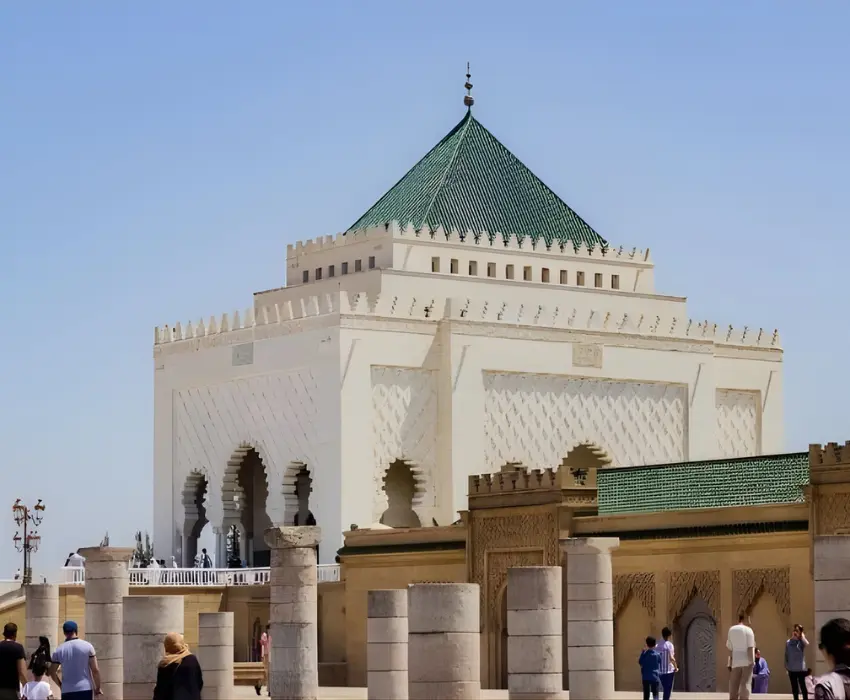 ❖ Lăng Mohammed V – nơi an nghỉ của các vị vua Maroc, nổi bật với kiến trúc Ả Rập – Andalusia tinh tế, mái ngói xanh truyền thống đặc trưng.