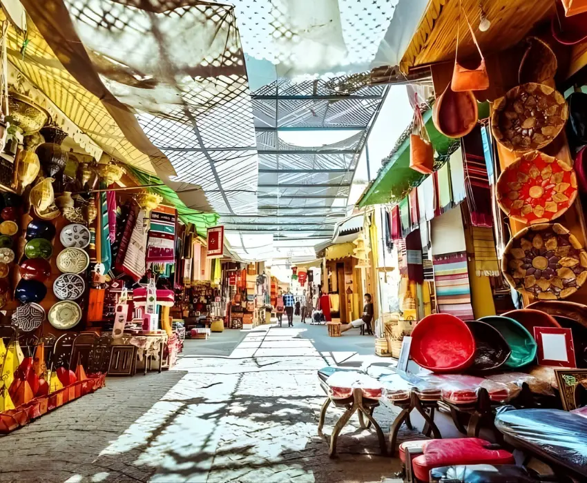 ❖ Tự do thư giãn, mua sắm đồ thủ công mỹ nghệ địa phương: thảm dệt tay, đồ da, tinh dầu Argan, gốm sứ thủ công, khăn quàng len địa phương – những món quà tinh tế mang dấu ấn Maroc.