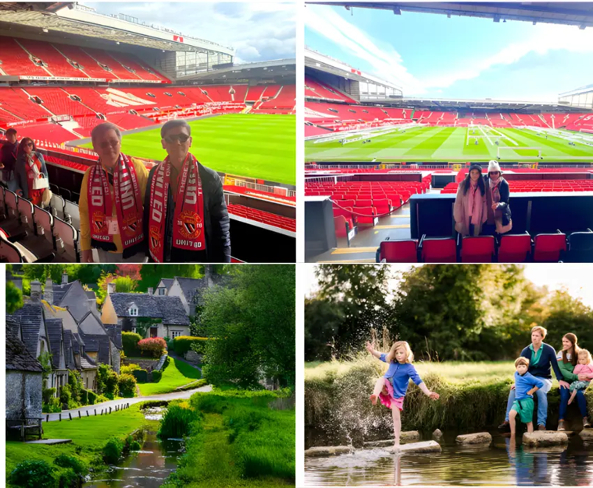 - Quý khách tham quan Sân vận động Old Trafford – “Nhà hát của những giấc mơ” (bao gồm vé vào trong). Sân vận động Old Trafford, biểu tượng của Manchester United, là một trong những thánh địa bóng đá nổi tiếng nhất thế giới. Với sức chứa hơn 74.000 chỗ ngồi, đây không chỉ là nơi diễn ra những trận cầu đỉnh cao mà còn lưu giữ lịch sử hào hùng của “Quỷ Đỏ” suốt hơn một thế kỷ. Tại Old Trafford, Quý khách có cơ hội bước vào phòng thay đồ của các huyền thoại, đi qua đường hầm cầu thủ, ngồi trên ghế huấn luyện và cảm nhận không khí sôi động của khán đài. Bảo tàng CLB trưng bày những chiếc cúp danh giá, áo đấu và kỷ vật gắn liền với những khoảnh khắc vĩ đại của bóng đá thế giới.