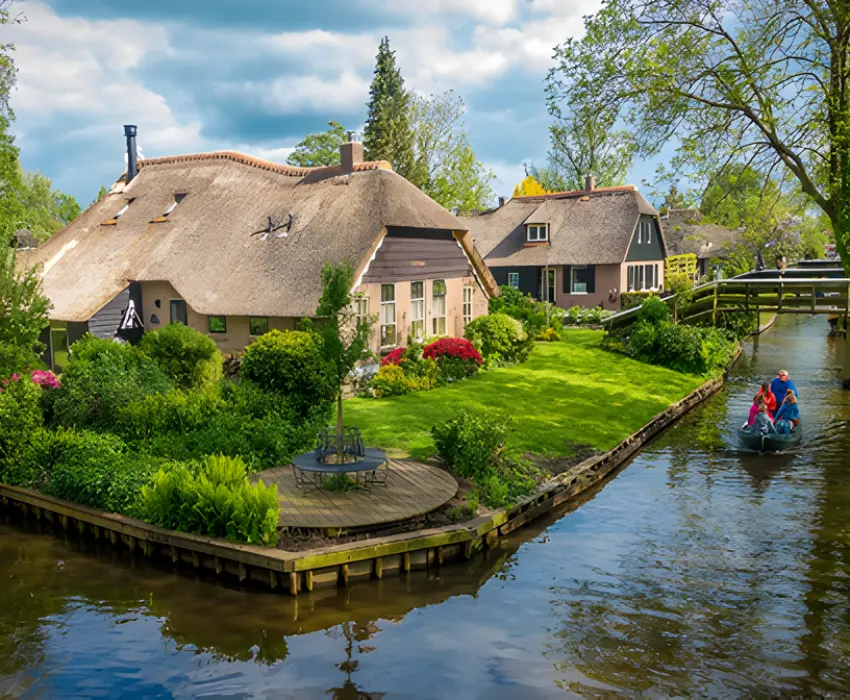 - Ngôi làng Giethoorn cổ kính - bình dị nằm tại tỉnh Overijssel của Hà Lan giống như trong truyện cổ tích. Giethoorn rất thơ mộng và yên bình, được mệnh danh là "Venice của Hà Lan". Đây cũng chính là điều đặc biệt khiến ngôi làng này trở thành một trong những điểm du lịch nổi tiếng (đã bao gồm vé đi thuyền)