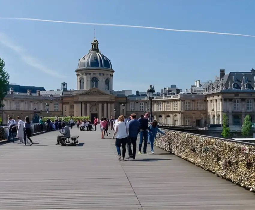 - Cầu Pont des Arts Bridge. Pont des Arts trong tiếng Pháp có nghĩa là “cây cầu nghệ thuật”, được xây dựng từ năm 1800 với thiết kế 9 nhịp. Là cây cầu sắt đầu tiên của Paris, cũng không khác nào chốn qua lại hệt như trong những công viên với các vườn treo, bồn hoa, ghế dài.