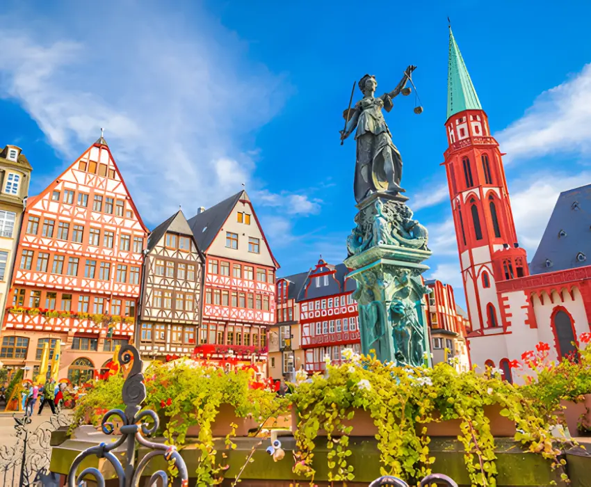 06h00 (giờ địa phương): Đoàn đến sân bay Frankfurt - Đức, xe và HDV đón đoàn và dẫn Quý khách đi tham quan thành phố Frankfurt.