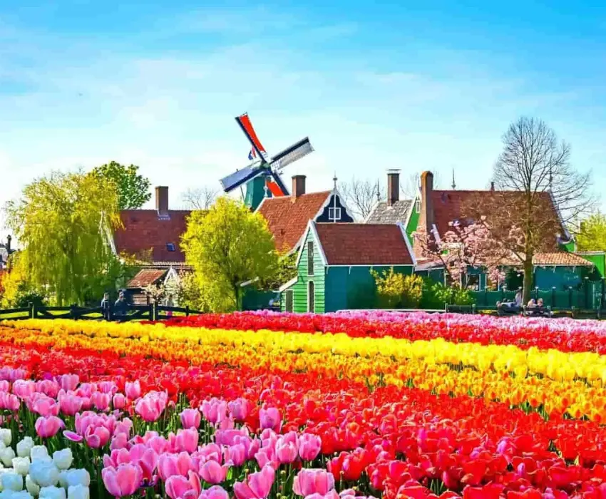 Sáng: Ăn sáng tại khách sạn và làm thủ tục trả phòng. Sau đó, xe đưa đoàn di chuyển đến đi tham quan Zaanse Schans ở ngoại ô Amsterdam để tìm hiểu về văn hóa, lịch sử cũng như những điểm đặc sắc tiêu biểu của Hà Lan, bao gồm: