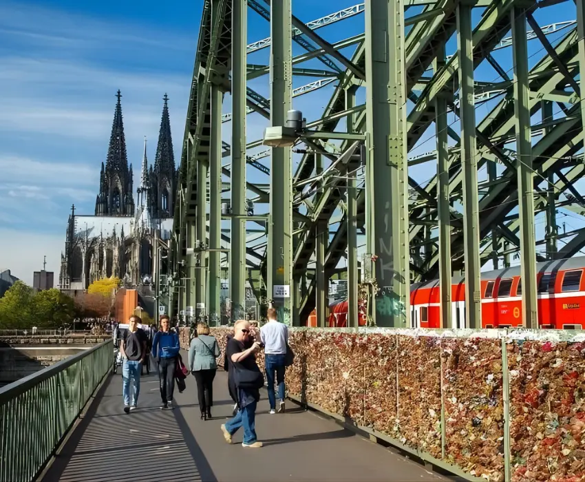 - Cầu Hohenzollern bắc ngang Sông Rhine, gần nhà ga chính của Cologne và là điểm hẹn lãng mạn của nhiều cặp tình nhân để đặt “khóa tình yêu” dọc thành cầu.