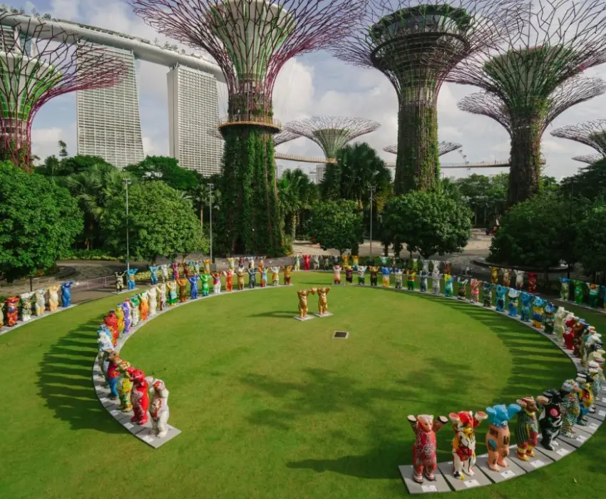 - Quý khách tham quan Khu Vườn Sinh Thái đặc biệt Gardens By The Bay - ngắm nhìn những siêu cây ấn tượng, cao 16 tầng là nơi tích trữ nước mưa, tạo ra năng lượng mặt trời và có vai trò như ống thông gió cho nhà kính công viên được chia làm 3 khu riêng biệt là: Bay South, Bay East và Bay Central. (chỉ tham quan khu Bay South, không bao gồm vé tham quan bên trong các khu vườn trong nhà kính)