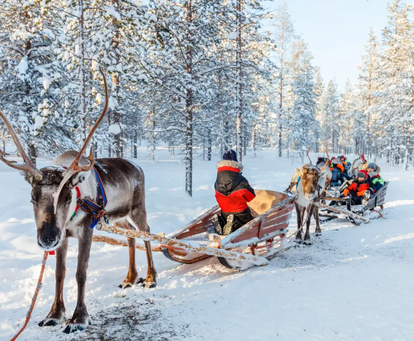 - Ngoài gặp gỡ ông già Noel, du khách đến với Rovaniemi còn có cơ hội tham gia nhiều hoạt động thú vị như cưỡi tuần lộc, đi xe trượt tuyết với chó husky kéo, trượt băng hay các hoạt động thú vị khác trên tuyết,….. (Chi phí tự túc).