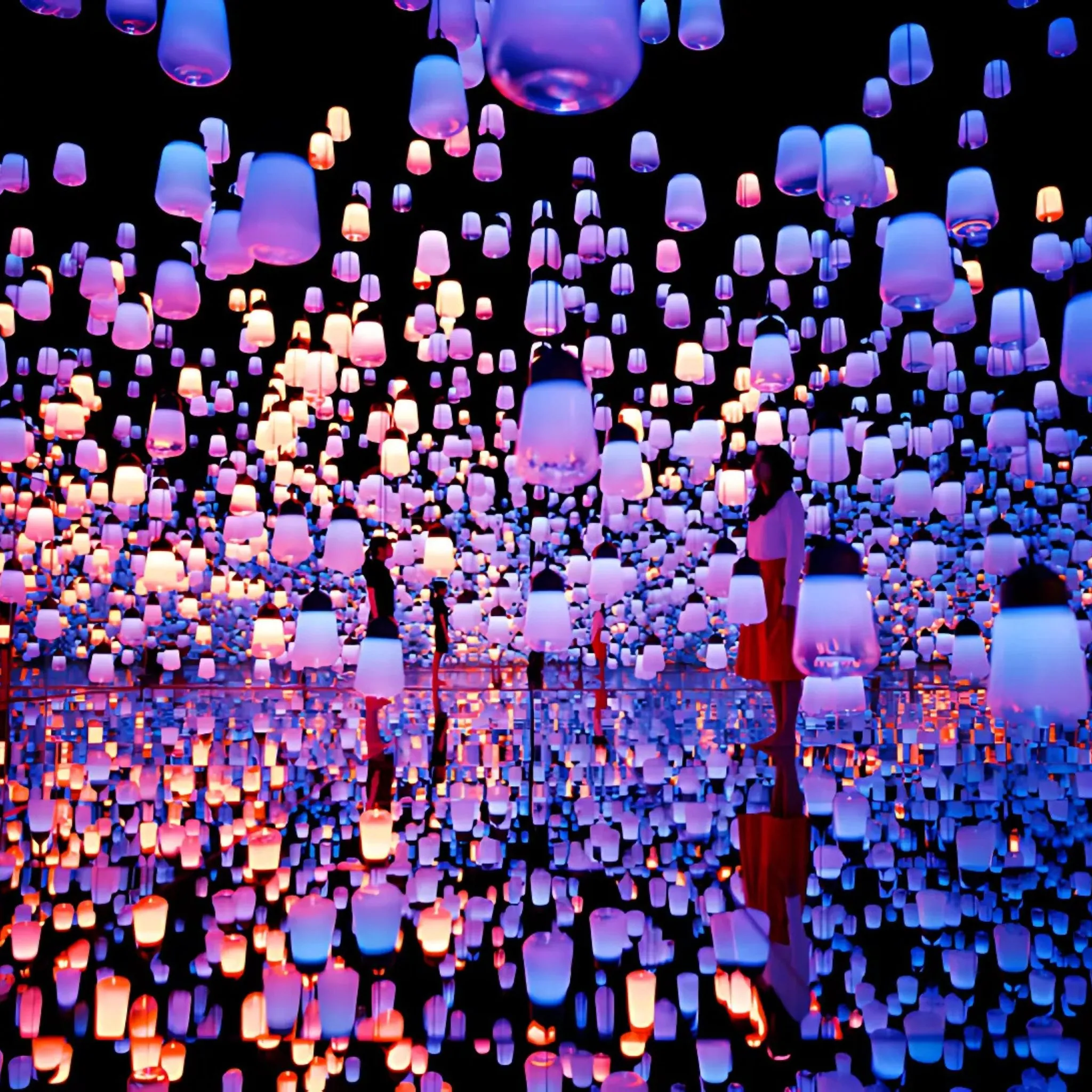 Khi bước vào, bạn sẽ lạc giữa hàng trăm chiếc đèn treo đổi màu huyền ảo, những thác nước ánh sáng như đang tuôn chảy ngay trước mắt, và những khu vườn ánh sáng phản chiếu lung linh như bước ra từ một giấc mơ.
