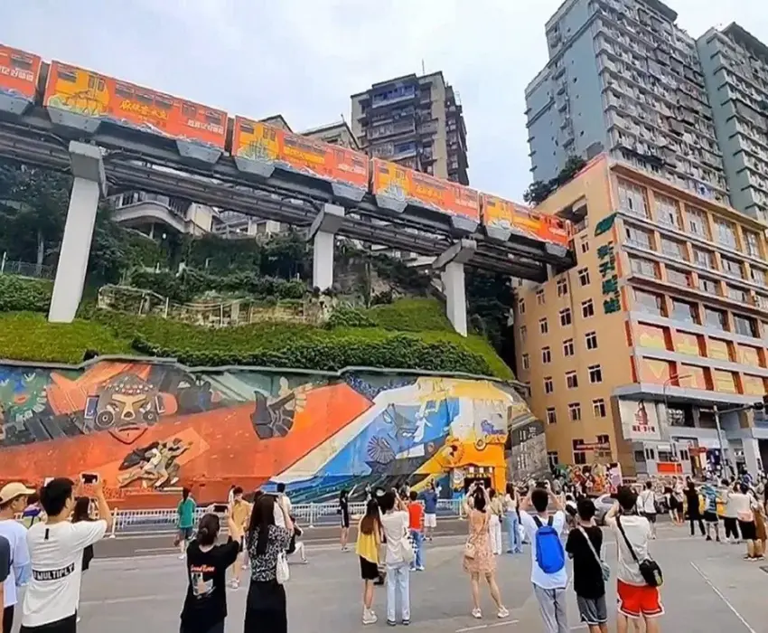 - Tàu điện ngầm đi xuyên tòa nhà Lý Tử Bá – Tuyến tàu điện trên cao đầu tiên trên thế giới chạy xuyên qua một tòa nhà, là điểm check-in nổi tiếng bậc nhất khi du lịch Trùng Khánh.